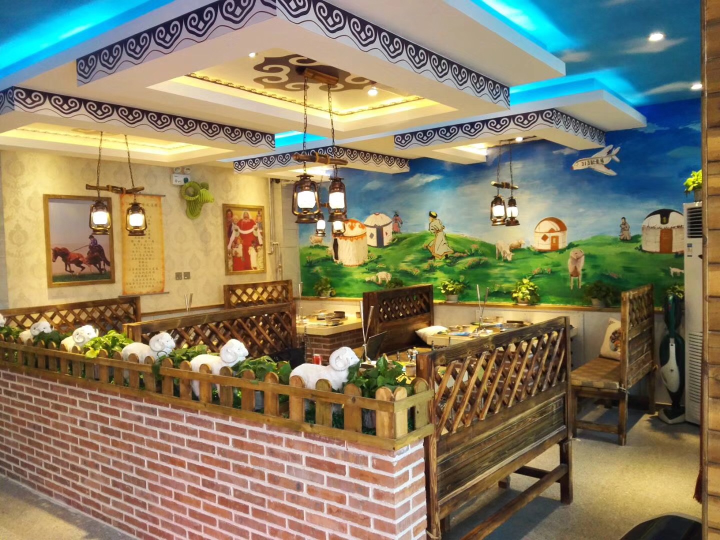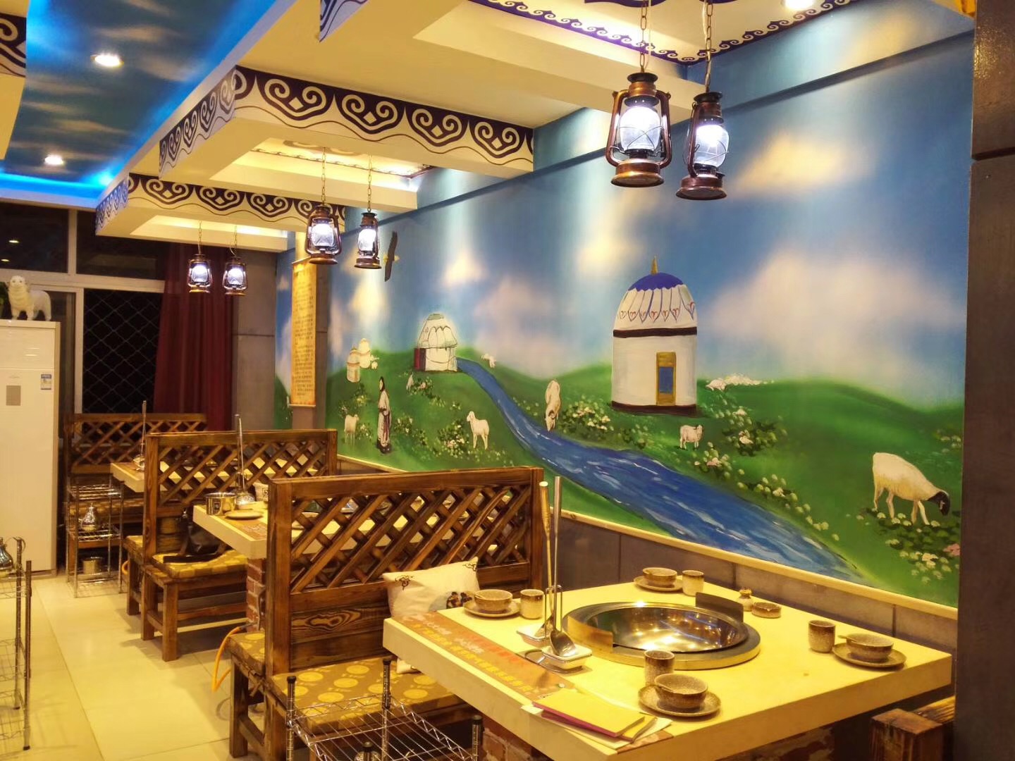 為天津紅橋313羊莊畫的墻體彩繪,客戶要求全部畫大草原和羊群,墻繪過程經(jīng)歷3天,幾個(gè)壁畫師累的不行。最后效果很好。